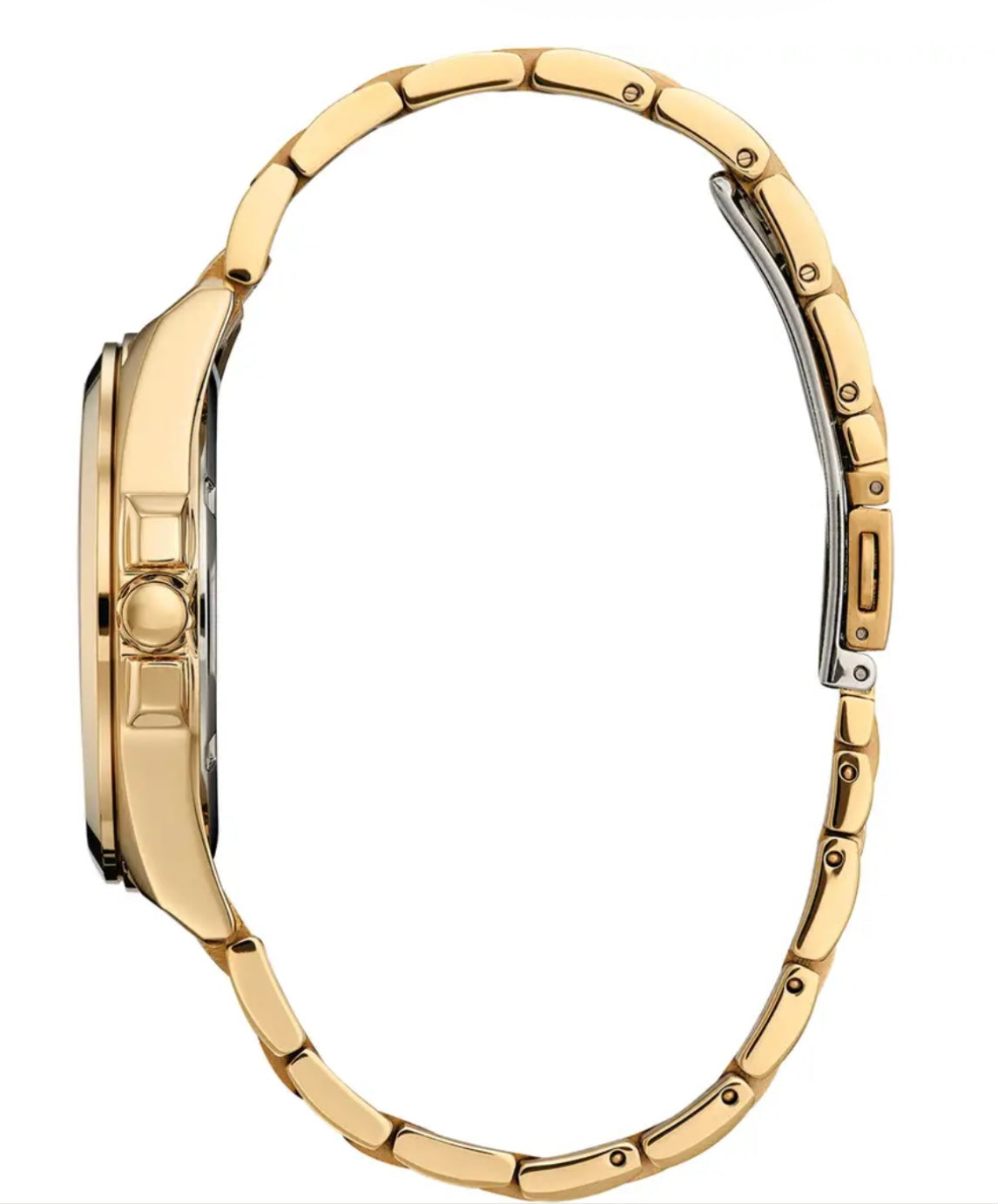 The byword is versatility for this handsome 3-hand Men's Bracelet watch crafted in  stainless steel gold plated. Details include a sophisticated blue dial and a date window perfect for the every day businessman. Featuring Eco-Drive technology – powered by light, any light. Never needs a battery.