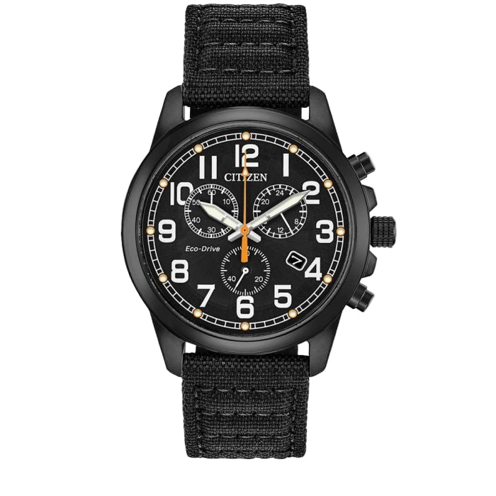 Citizen, Watch, Military, AT0205-01E, Eco-Drive, Chronograph, Black, Fabric